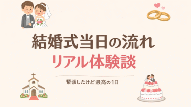 入籍・結婚式への道のり結婚式当日の流れとリアルな感想|緊張したけど最高だった1日 結婚式当日の流れが不安な方へ。実際に体験した1日の流れと、緊張したリアルな感想、注意点をまとめました。これから結婚式を迎える方の参考になれば嬉しいです。2025.10.25入籍・結婚式への道のり日記