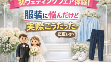 お出かけウェディングフェア初参加|服装に悩んだけど実際こうだった 初めてウェディングフェアに参加した体験談。服装に悩んだけど実際はどうだったのか、リアルな感想や費用の話、行ってわかったことを正直にまとめました。これから行く人の参考になれば嬉しいです。2025.04.20お出かけ入籍・結婚式への道のり日記